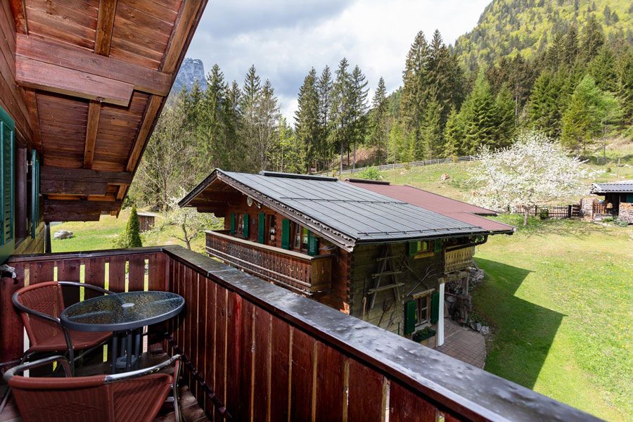 Balkon mit Nachmittagssonne und blick zum Waldrand
